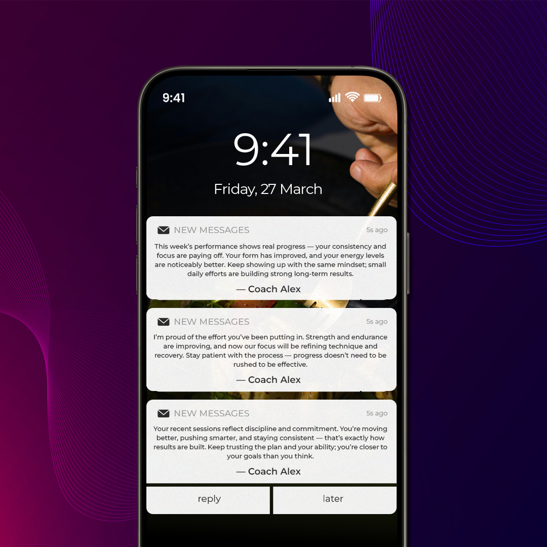 Plateaus, low motivation, and busy weeks are normal. Your coach steps in to adjust your plan, mindset, and strategy so you keep moving forward instead of quitting.