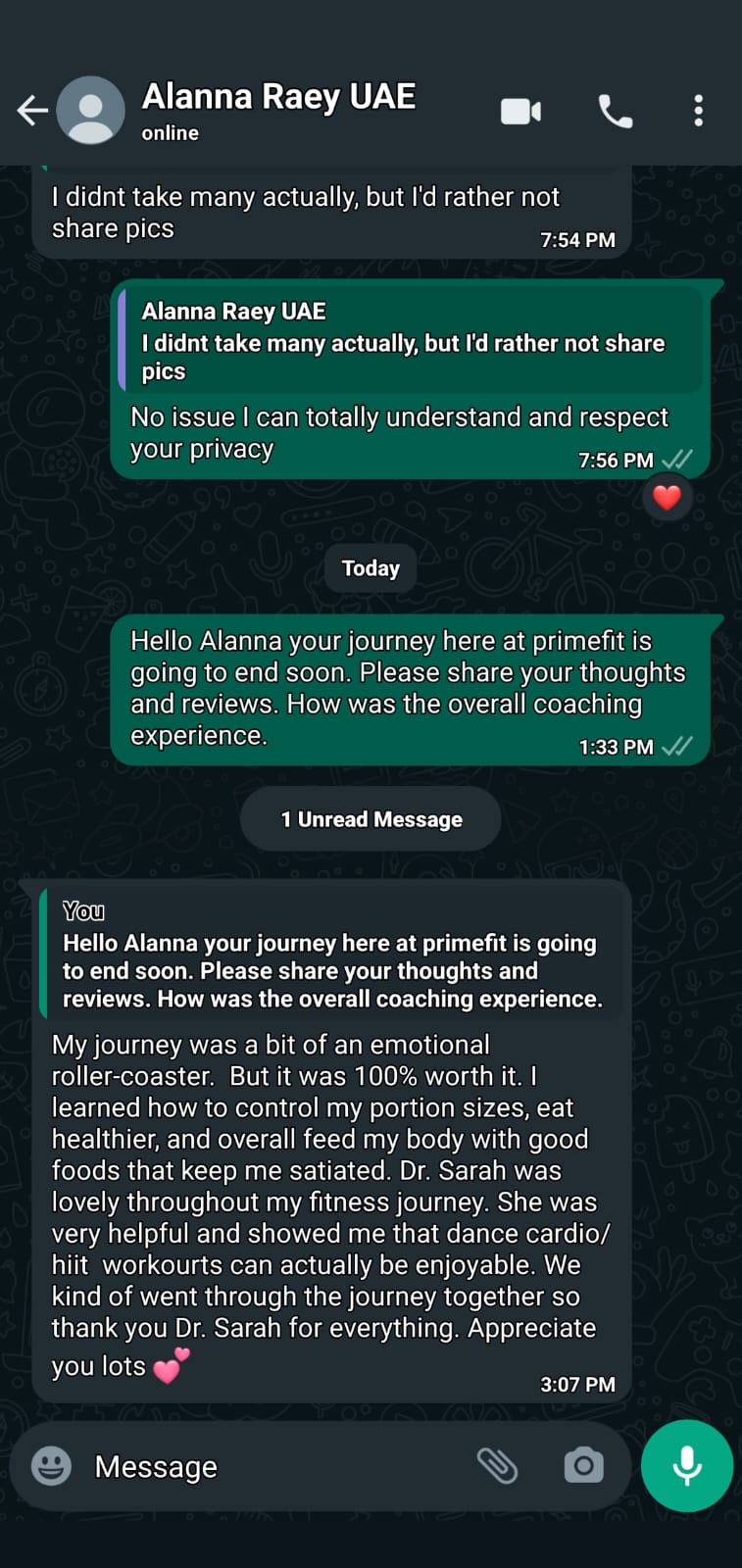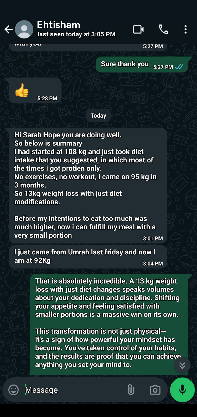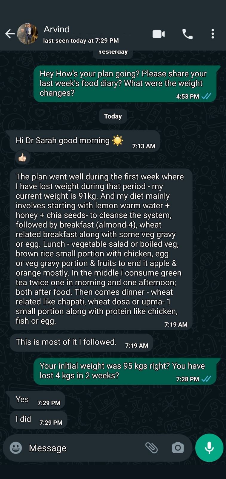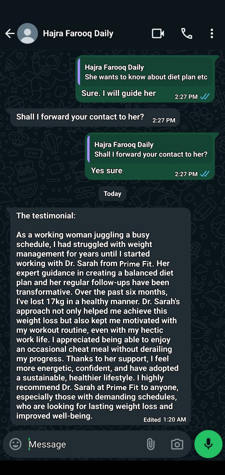 "Dr. Sarah supported me at every step of my journey. From daily follow-ups to the motivation I needed on days I felt low, she was always there.